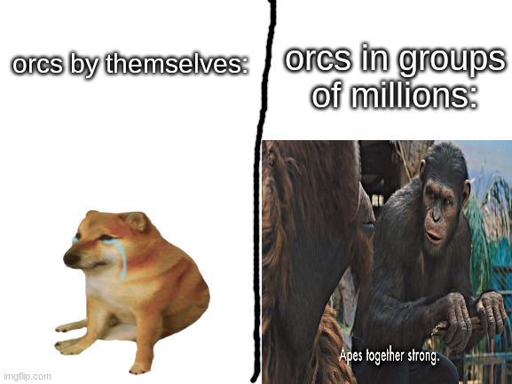 , Apes Together Strong Meme Compilation I'm getting real tired of making these vids and no one subbing so sub and hit the bell I . "Apes Together Strong! - Gorak's Guide to Classic WoW, Episode 19 (WoW Machinima)", A Warlock finds more than he bargained for when he attacks a poor monke in Stranglethorn Vale! If you'd like to support the . If you're searching for Apes Together Strong Meme subject, Planet of the Apes | Apes Together Strong, I did not start this war." i love the recent planet of the apes franchise and think its one of the best trilogy's in recent time. i wanted to . you have visit the ideal web. Our site always gives you hints for seeing the highest quality pic content, please kindly hunt and locate more enlightening articles and images that fit your interests.